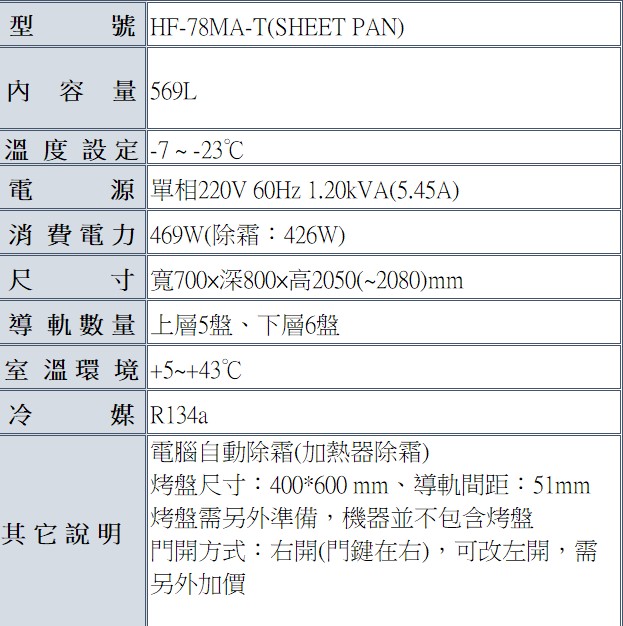 星崎-兩門立式冷凍冰箱(插盤) HF-78MA-T(SHEET PAN)