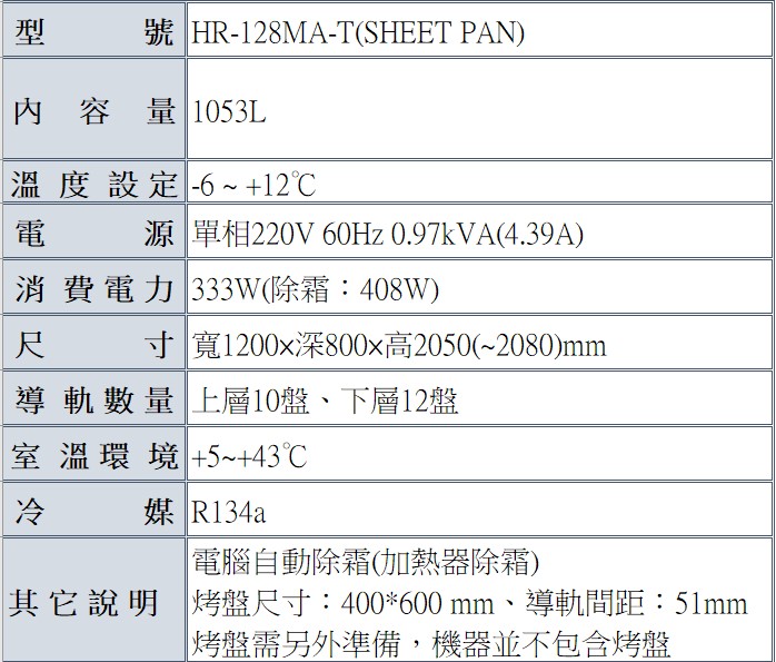 星崎-4呎立式冷藏冰箱(插盤) HR-128MA-T(SHEET PAN)