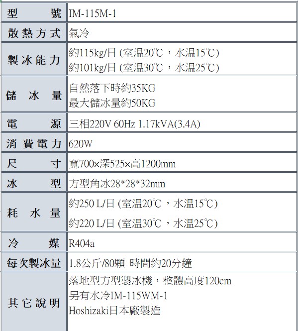 星崎 115公斤方型冰製冰機 IM-115M-1