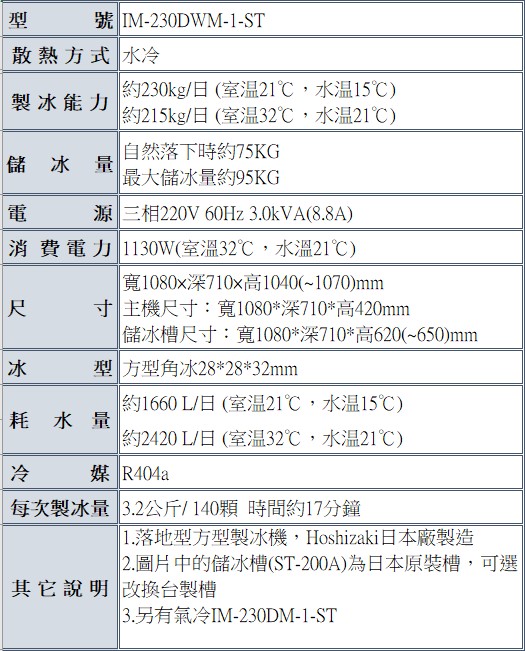 星崎 230公斤方型冰製冰機(橫式) IM-230DWM-1-ST