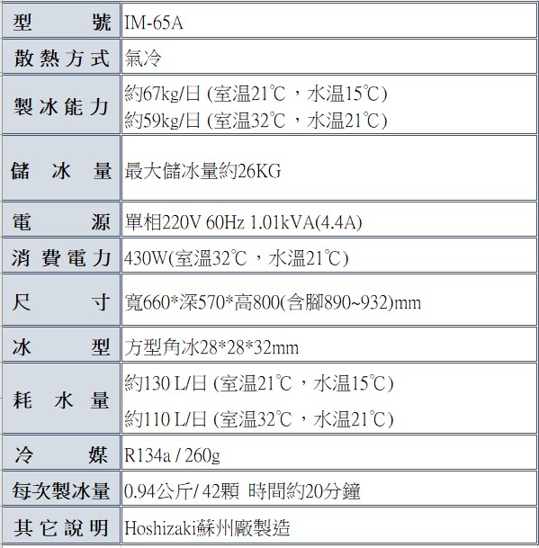 星崎 65公斤方型冰製冰機(蘇州廠) IM-65A