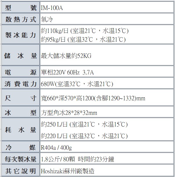 星崎 100公斤方型冰製冰機(蘇州廠) IM-100A