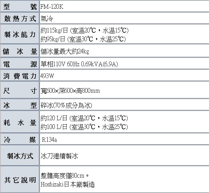 星崎 120公斤碎冰製冰機 FM-120K
