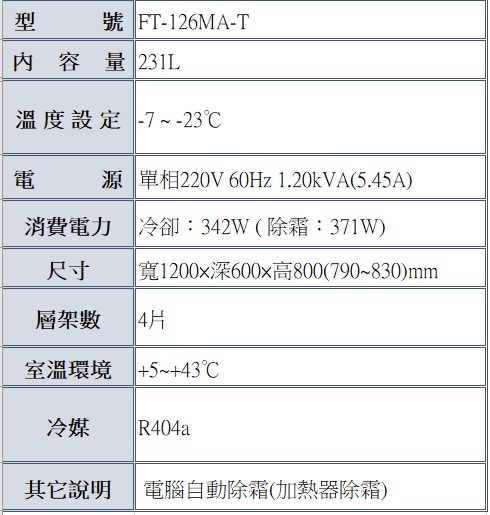 星崎-4呎60深工作台冷凍冰箱 FT-126MA-T