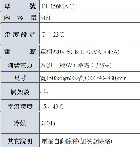 星崎-5呎60深工作台冷凍冰箱 FT-156AM-T